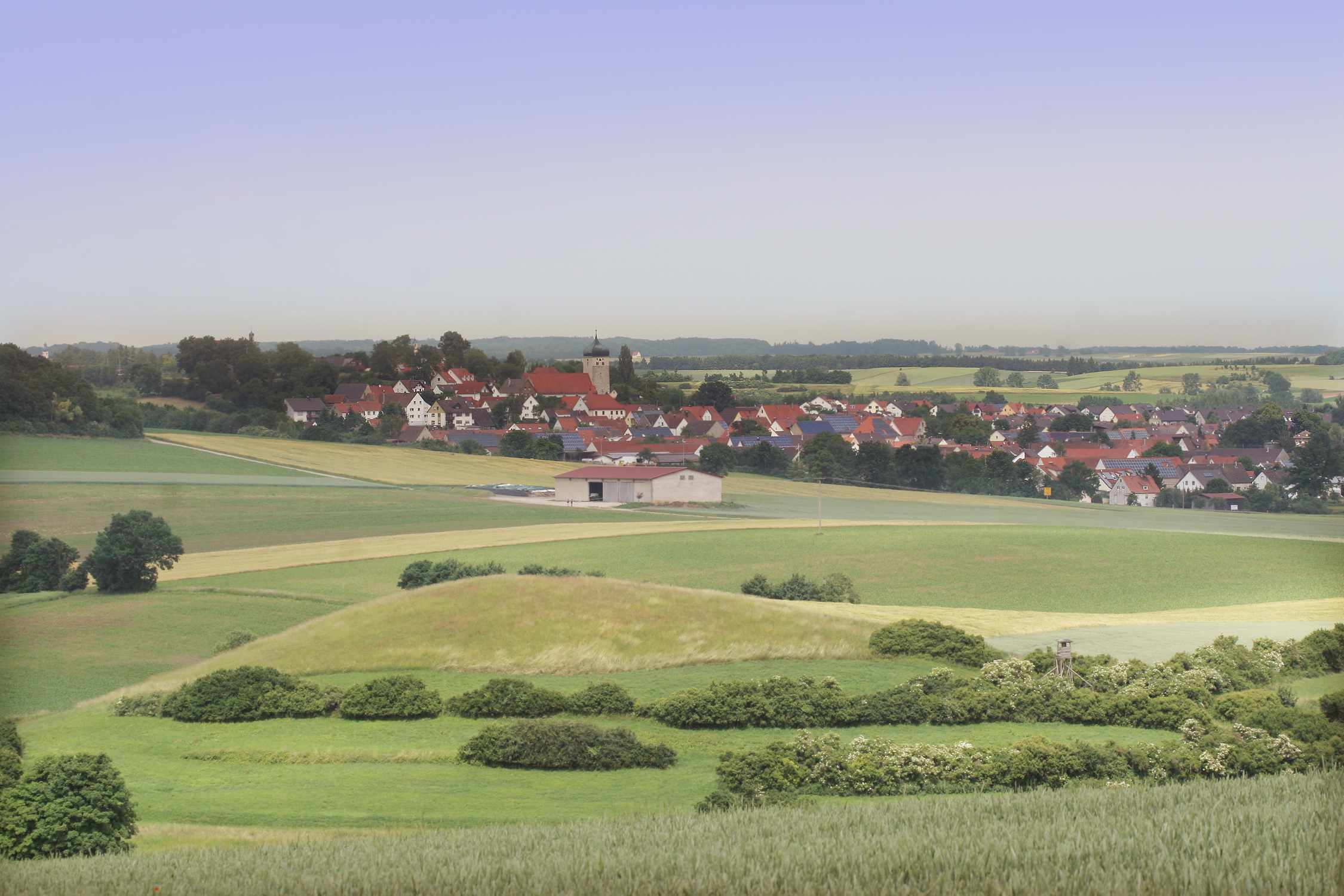 Als König Ludwig I. von Bayern und seine Gemahlin Königin Theresia auf der alten Handelsstraße von Rothenburg über Nördlingen auf der Anhöhe, an welche das Dorf sich auf der Seite gen Süden amphitheatralisch anlehnt und wo sich nächst der Ulrichskapelle eine Aussicht auf das nahe, untenliegende Ries eröffnet, ein ehrfurchtvollster Empfang bereitet.